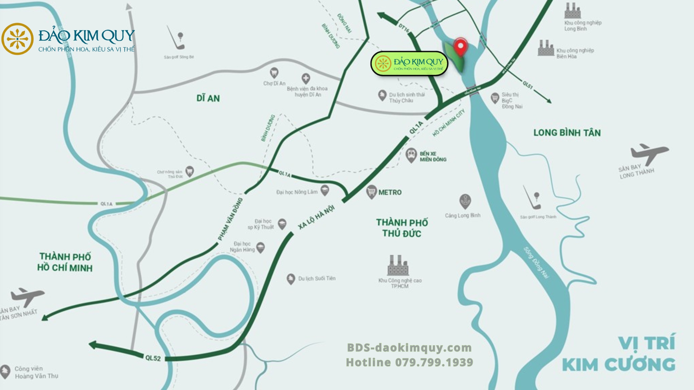 Ngoài ra do vị trí của Đảo Kim Quy nằm tại Phường Tân Vạn, TP Biên Hòa nơi được xem là đông cư dân nhất Tp Biên Hòa nên cũng được thừa hưởng nhiều tiện ích chỉ mất khoảng 5 phút đi xe.
